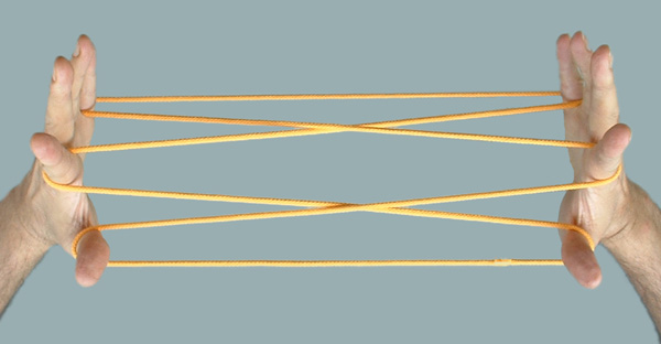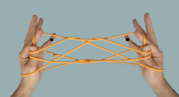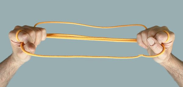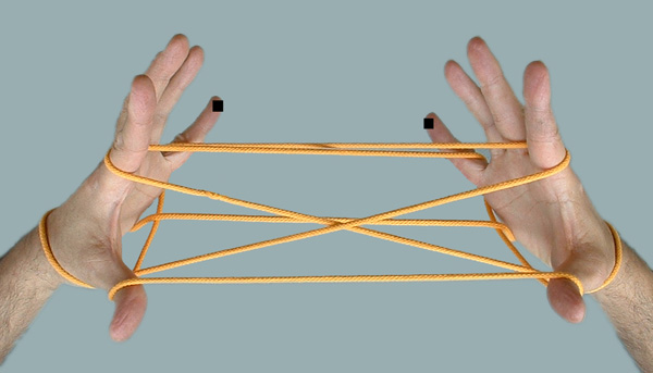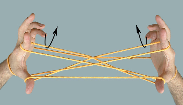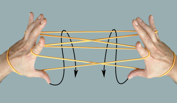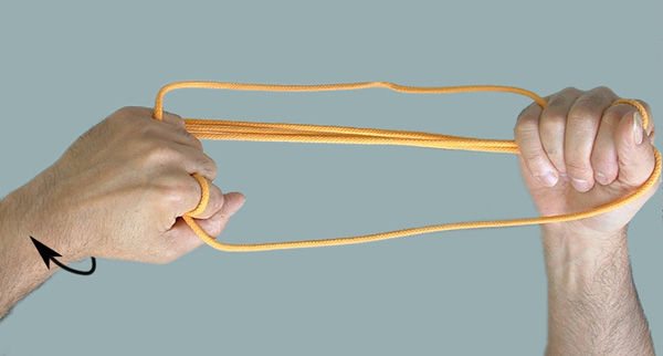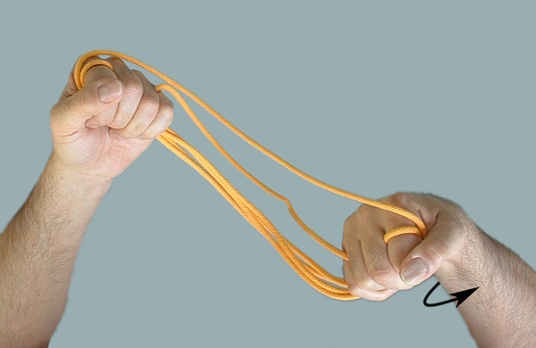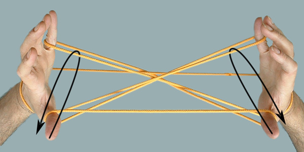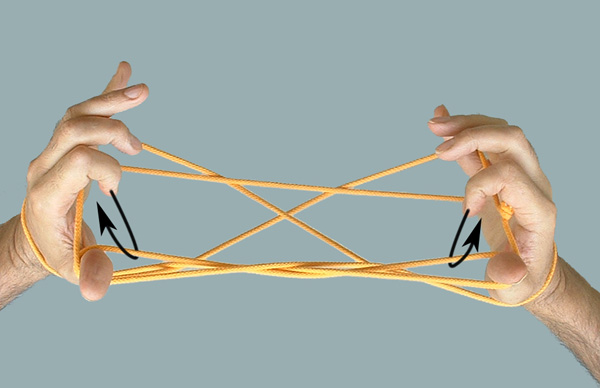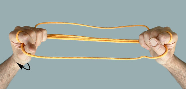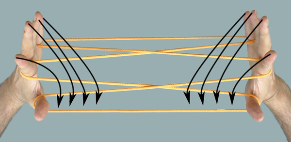 | Faire les mêmes opérations avec la main droite. Revenir en position et tendre le fil. |
